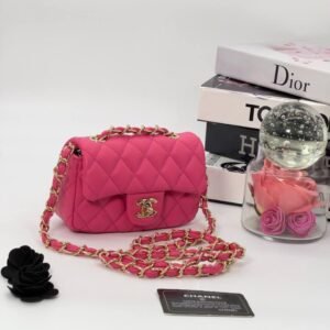 Ova mini verzija kultne Chanel Flap torbice donosi savršen spoj elegancije i praktičnosti u kompaktnom formatu. Prepoznatljiv prošiveni dizajn i lanac s kožnim detaljem čine je pravim modnim dodatkom za svaku prigodu.