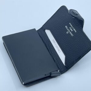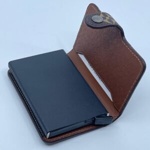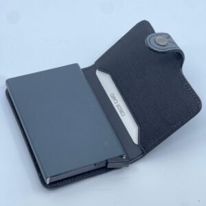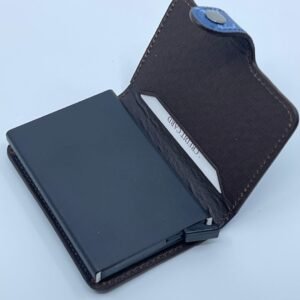 Inovativan i kompaktan držač kartica s mehanizmom za automatsko izbacivanje, dizajniran za brzi pristup i maksimalnu sigurnost. Vanjski premaz od izdržljive kože s prepoznatljivim uzorkom, dok unutrašnjost skriva aluminijski okvir koji čuva kartice od savijanja i elektroničkog krađe (RFID zaštita).