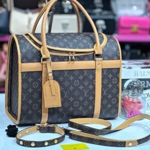 Luksuzni set za pse koji uključuje elegantan povodac i ogrlicu u prepoznatljivom Louis Vuitton monogram stilu. Savršen za vlasnike koji žele da i njihovi ljubimci izgledaju sofisticirano u svakom koraku.