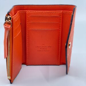 Kompaktan novčanik s upečatljivim LV logotipom i prepoznatljivim Monogram cvjetovima. Idealan je za one koji žele spoj elegancije i funkcionalnosti u manjem formatu. Izrađen od kvalitetne kože, nudi odličnu organizaciju s prostorom za kartice, novčanice i kovanice.