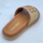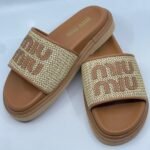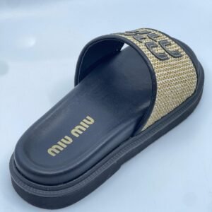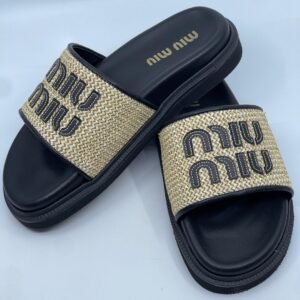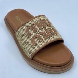 Natikače koje spajaju ležernost ljetne obuće s prepoznatljivim Miu Miu stilom. Istaknuti pleteni prednji remen i veliki izvezeni logo pružaju moderan izgled, dok udobna unutrašnjost i čvrst potplat omogućuju cjelodnevno nošenje.