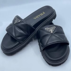 Elegantne natikače koje savršeno spajaju luksuznu estetiku s modernom udobnošću. Prepoznatljiv Prada logo na prednjem dijelu i efektan prošiveni dizajn čine ovaj model nepogrešivim izborom za urbane kombinacije.