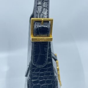 Ova prepoznatljiva hobo torbica iz Saint Laurent kolekcije donosi savršen spoj retro šarma i modernog luksuza. Elegantno zakrivljen oblik i zlatni YSL logo čine je ikoničnim dodatkom za svaku prigodu.