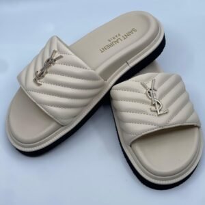 Elegantne natikače koje savršeno spajaju luksuz i udobnost u prepoznatljivom Saint Laurent stilu. Prednji remen ukrašen je legendarnim YSL metalnim logotipom, dok mekana konstrukcija i profilirani potplat omogućuju cjelodnevno nošenje.