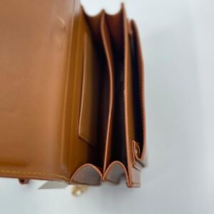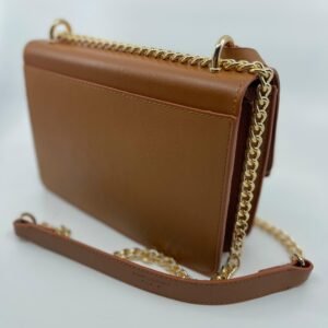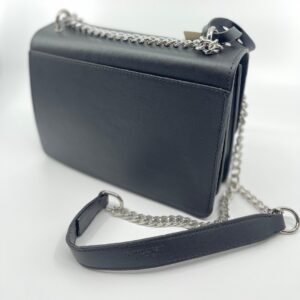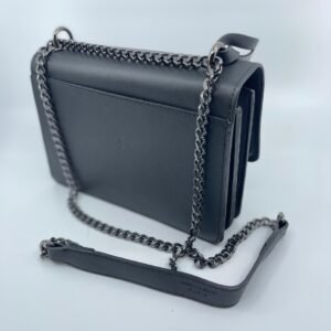Torba dolazi s metalnim lančanim remenom s kožnim umecima, koji omogućuje nošenje preko ramena ili kao crossbody. Preklop se zatvara skrivenim magnetom, a unutrašnjost je funkcionalno organizirana s više odjeljaka za jednostavno spremanje vaših osnovnih stvari.