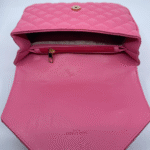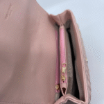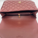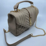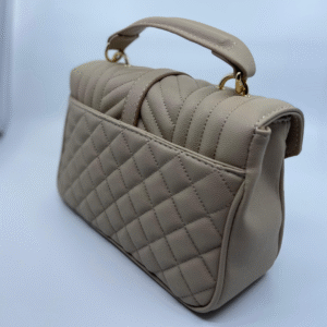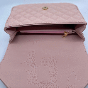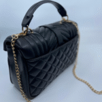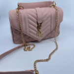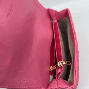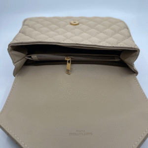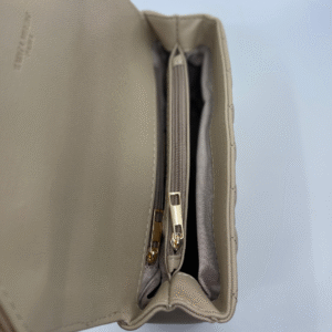 Torba dolazi s luksuznim zlatnim lancem koji se može nositi na ramenu ili kao crossbody, uz dodatni kožni dio za udobnije nošenje. Unutrašnjost torbe je dovoljno prostrana s obzirom na kompaktne dimenzije (16 cm visina x 24 cm širina x 10 cm dubina) i idealna je za svakodnevne potrepštine poput mobitela, novčanika, ključeva i sitne kozmetike.